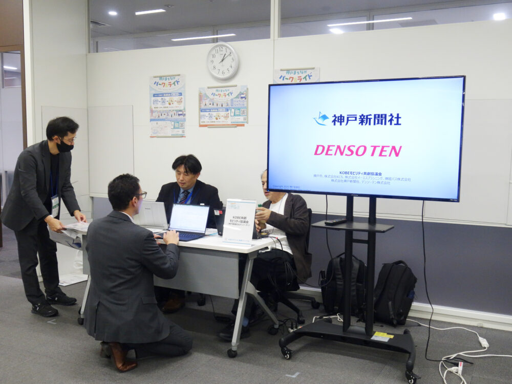 KOBE共創モビリティ協議会では、国交省のモデル実証運行事業に採択された「神戸まちなかパーク&ライド」について展示を行いました。