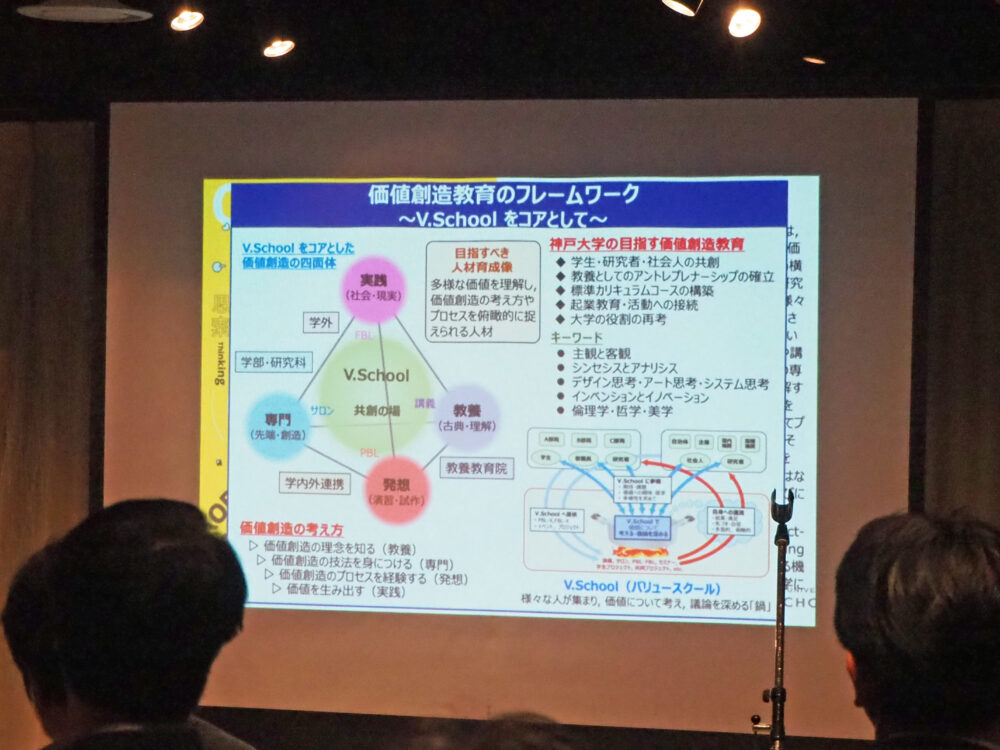 神戸大学では、研究科・学部の壁を越え、様々な専門分野の学生が参加して「価値創造」を学ぶ『V.School』という取り組みを行っています。