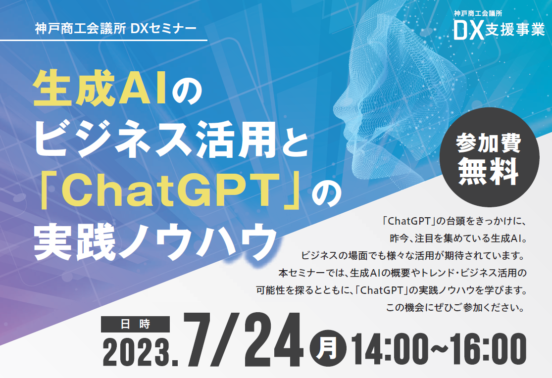 本セミナーでは、生成AIの概要やトレンド・ビジネス活用の可能性を探るとともに、「ChatGPT」の実践ノウハウを学びます。この機会にぜひご参加ください。