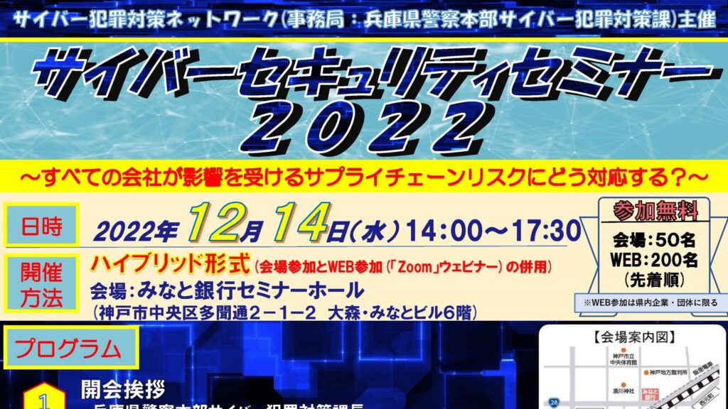 《セミナー》サイバーセキュリティセミナー2022 神戸会場(COPLI共催)
